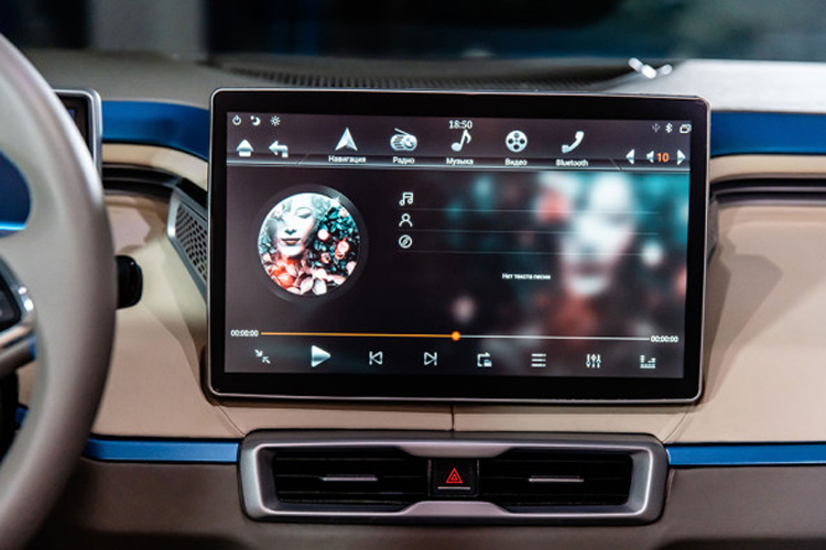E-NEVA — это кроссовер длиной 4,5 метра. Как можно видеть на изображениях, машина оборудована цифровой приборной панелью и большим дисплеем информационно-развлекательной системы: размер этого экрана составляет 15 дюймов по диагонали. Кроме того, говорится о наличии проекционного дисплея на лобовом стекле.