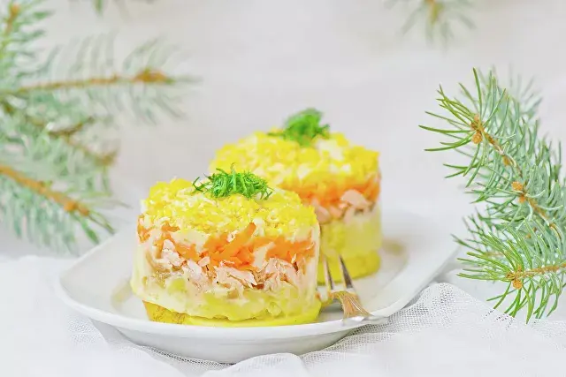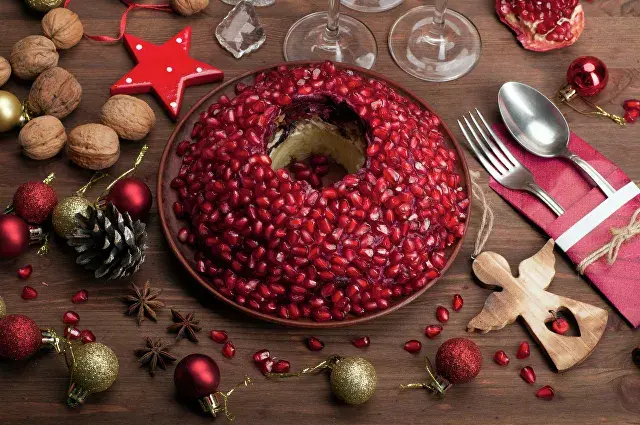 По данным опросов ВЦИОМ, новогодний стол у россиян не обходится без салата оливье, мандаринов и селедки под шубой."