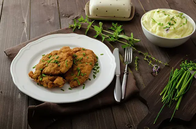 Отбить куриную грудку до толщины около 1,5 см, посолить и поперчить по вкусу.