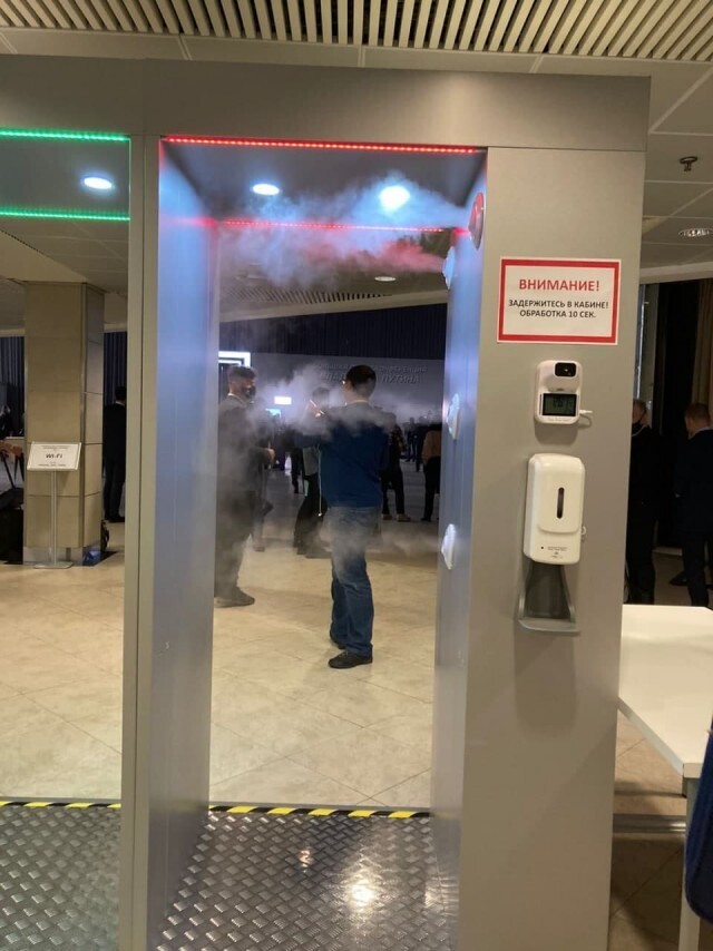 Обработают даже иноагентов и Ксению Собчак. Кроме того, всем представителям СМИ и лицам присутствующим в зале раздадут маски, которые, как сообщается, «обработаны антибактериальным раствором наносеребра».