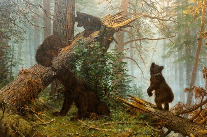 "Картина прекрасного художника Ивана Шишкина «Утро в сосновом лесу» считается шедевром, превозносящим растительную и животную природу. Работа выглядит настолько правдоподобной, что кажется фотографией, сделанной где-то в лесу." - Одно не понятно, почему-то во многих илюстрациях, у медведя, что на переднем плане, очень уж большие зубы...в натуре, их, совсем не видно...