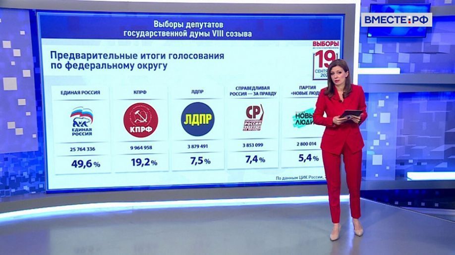 Хотя первое, что удивило многих, это беспрецедентно высокая явка — на избирательные участки пришло 51,68% правоспособного населения. В целом результаты выборов выглядят так: Единая Россия – 49,83%, КПРФ — 18,94%, ЛДПР — 7,51, Справедливая Россия — 7,47%, Новые люди — 5,33%. Последние преодолевают пятипроцентный барьер и попадают в новый созыв Госдумы.