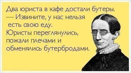 Прибегает молодой сын-юрист к старому отцу-юристу и кричит: - Отец, поздравь меня! Я выиграл дело, которое ты не мог выиграть всю свою жизнь! А тот ему в ответ: - Вот дурак, да я с него всю свою жизнь кормился.