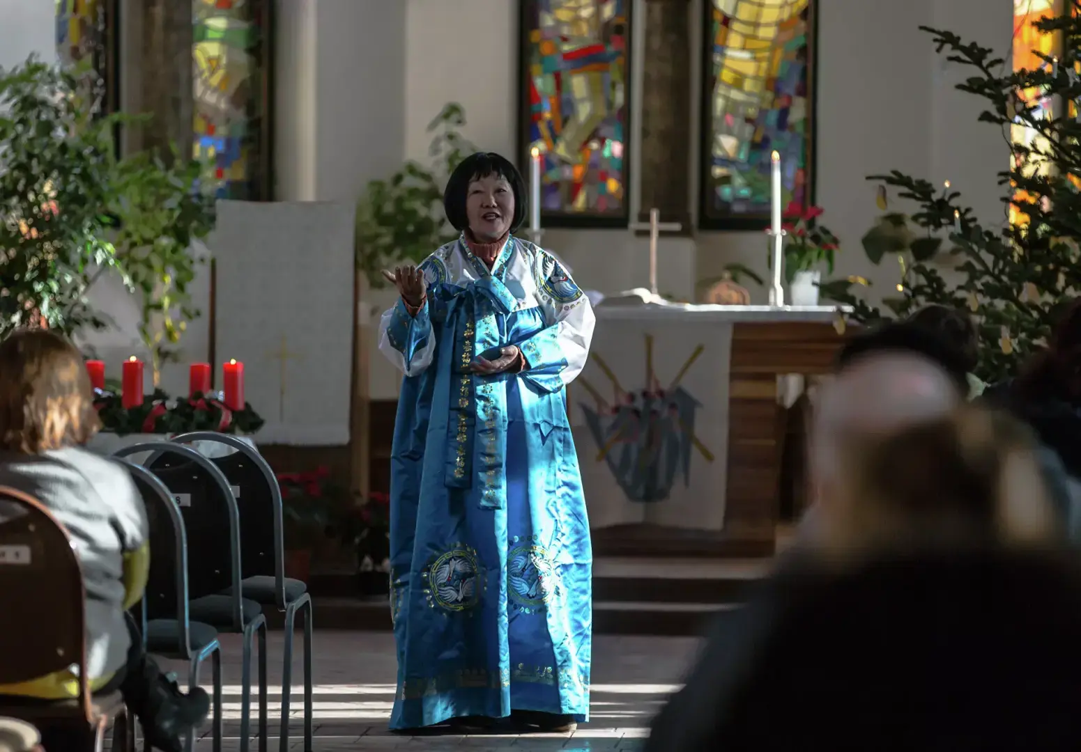 Прихожанка лютеранской церкви Святого Павла во Владивостоке во время торжественной службы