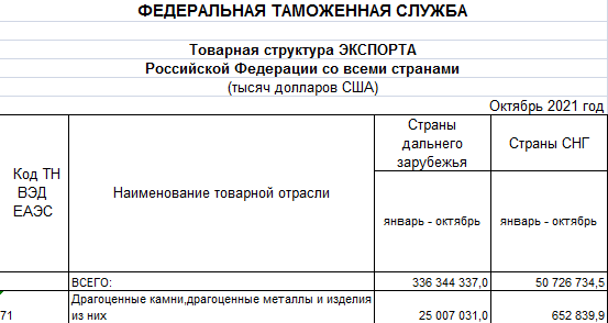 До этого Федеральная таможенная служба опубликовала данные об экспорте золота из России за январь – октябрь 2021 года. Согласно статистике, на экспорт ушло 240,5 тонн драгметалла.