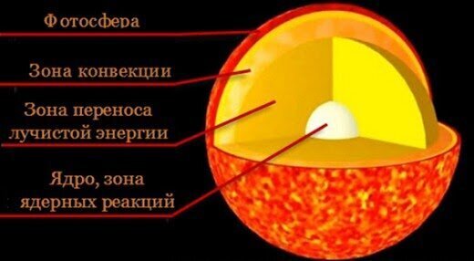 Что интересно, ядро это единственное место в звёзде, где выделяется энергия (за счет термоядерных реакций). Остальные слои Солнца просто нагреты этой энергией.