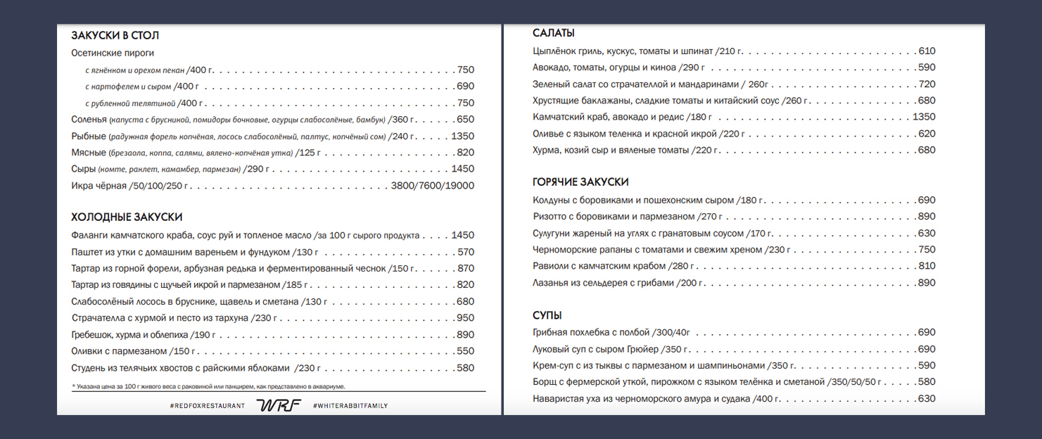Для тех, кто не довольствуется закусками и не покупает еду в номер, чтобы потом самим приготовить, пообедать в кафе или ресторане среднего класса выльется тоже в кругленькую сумму. Зато вы сможете, например, отведать камчатского краба за 1350 рублей, мини-эклер с чёрной игрой за 1450 рублей или филе-миньон за 1400 рублей. Причём это цены за небольшие порции не в пиковые (праздничные) дни.