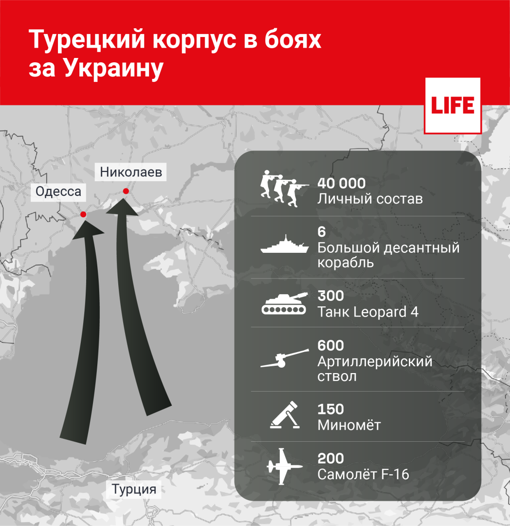 — Расстояние 500 километров корабль идёт со скоростью 40–50 километров в час, за сутки могут успеть провести такую операцию. Но я не думаю, что Турция может совершить мгновенное развёртывание, как это сделала Россия в Сирии. Я полагаю, что переброска войск займёт месяц-два, им же не требуется мгновенно вступать в бой, — подчеркнул он.