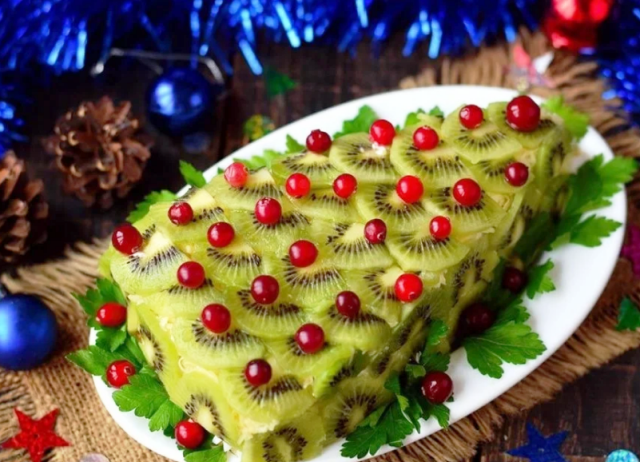 Праздничный салат Елочка с курицей и киви на Новый год 2022