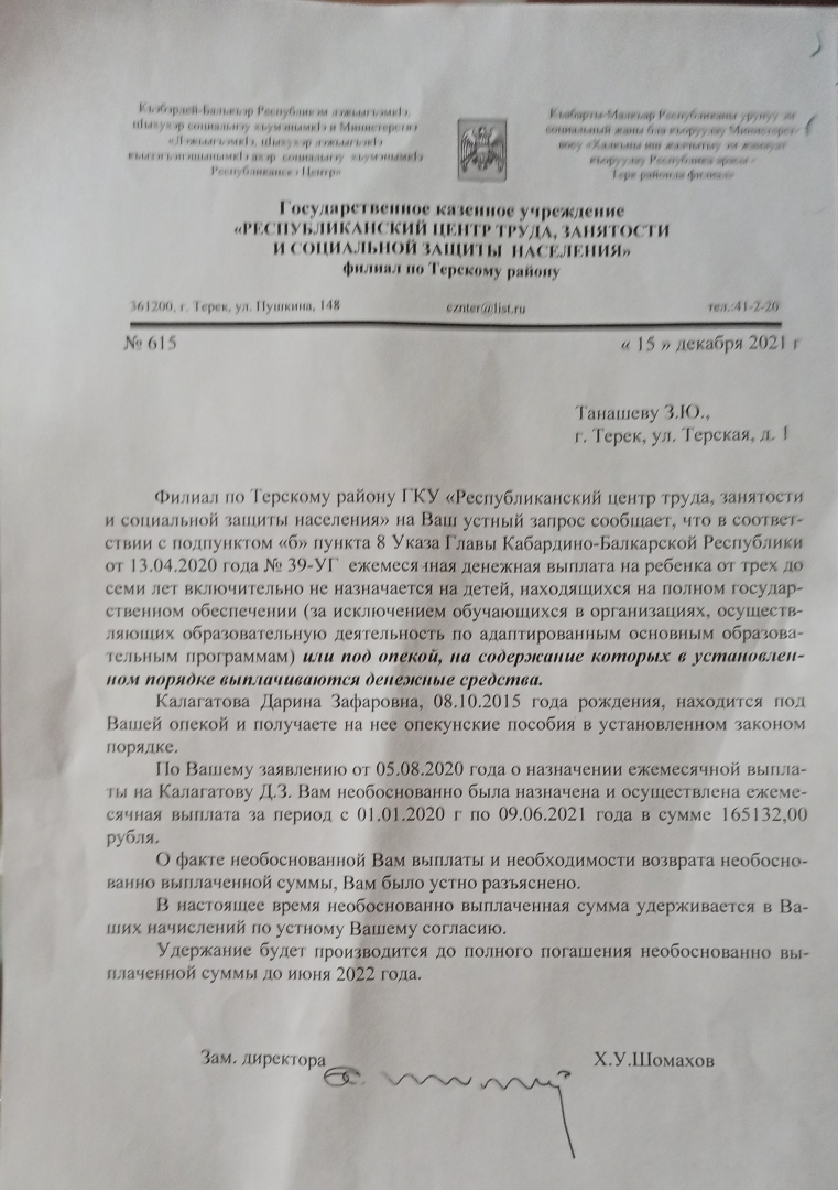 Но тем не менее , удерживают пособие младшего ребёнка в счёт " ошибочно выплаченных " за старшего ребёнка ( который был под опекой. Но Слава Богу сейчас зять прошёл процедуру удочерения и ждёт уже св. о рождении