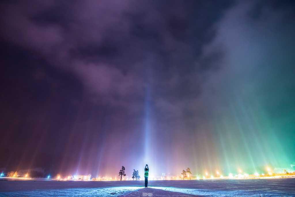 Погодные - это самые уникальные явления. Световые столбы - одно из них. Они выглядят потусторонне, как лучи света, исходящие от внеземного космического корабля. Узкие световые дорожки, тянущиеся с неба, видны обычно в Арктике, а также в некоторых местах США и Канады, где очень холодно. Эта иллюзия создается, когда холодный воздух превращает влагу в воздухе в кристаллы. Затем кристаллы медленно опускаются к земле. Когда свет из окружающей среды, например, уличных фонарей, попадает на кристаллы, получается красивая, тонкая и высокая световая иллюзия.