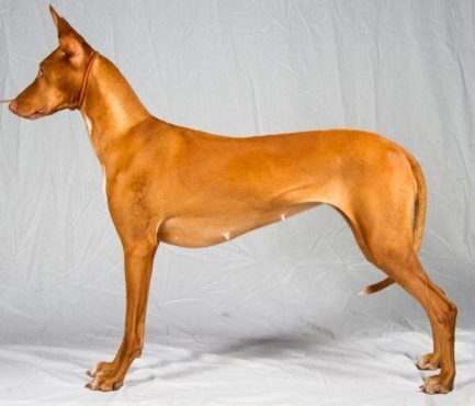 На первый взгляд гончая фараона выглядит изящной и элегантной, а также мощной и спортивной. Его строение имеет силу без громоздкости и чрезмерной мускулатуры. Его голова изящна, не будучи прекрасной или чрезвычайной Череп напоминает тупой клин, он длинный и точеный, с небольшим упором и рылом хорошей длины. Его глаза овальные с острым, бдительным и умным выражением лица. Их глаза обычно янтарного цвета. У него длинная, стройная и мускулистая шея, слегка выпуклая. У этого есть глубокая грудь, которая простирается до локтей и умеренной подтяжки.