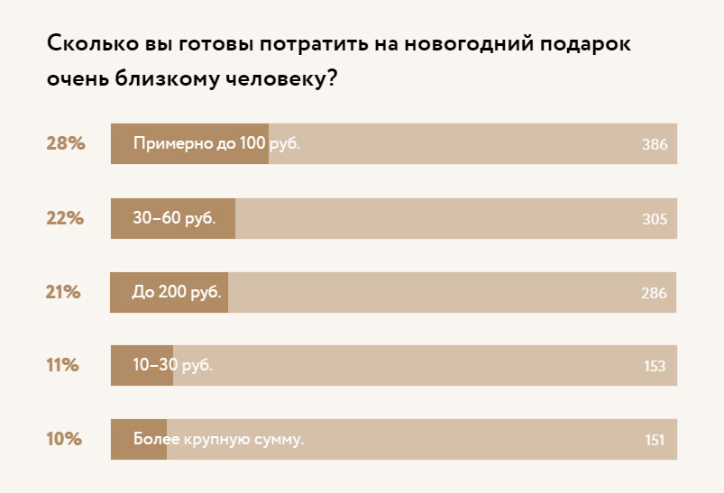 Спасибо за публикацию.Все прекрасно понимают,я думаю,что вопрос стоит :"...не сколько Вы готовы потратить...", а :"... какие материальные возможности..." у большей части населения ... К великому сожалению, основная часть населения сделать своим друзьям,родственникам просто не в состоянии сделать и желание в данном случае не совпадает с возможностью...