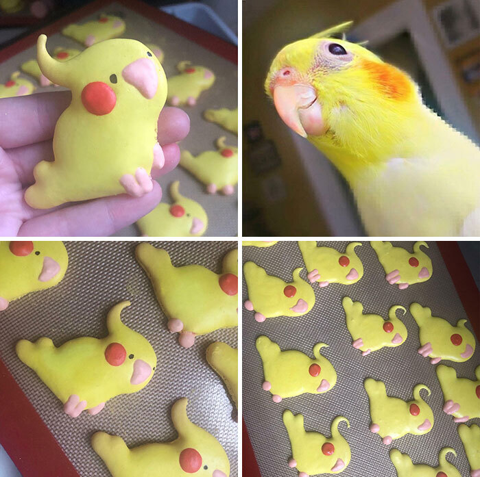 Пользовательница lilbopeachy решила сделать макаруны в форме попугайчиков, но не потому что они красивые. Так она почтила память кореллы Мауи, который скончался всего через несколько месяцев после того, как попал к юной девушке-кондитеру. В Интернете можно найти сотни видеорецептов оригинальных печенек, в том числе и на русском. Ингредиенты стандартные, единственное, что придётся поискать, — миндальная мука. Стограммовый пакетик, а этого хватит за глаза, можно купить за 200 рублей.