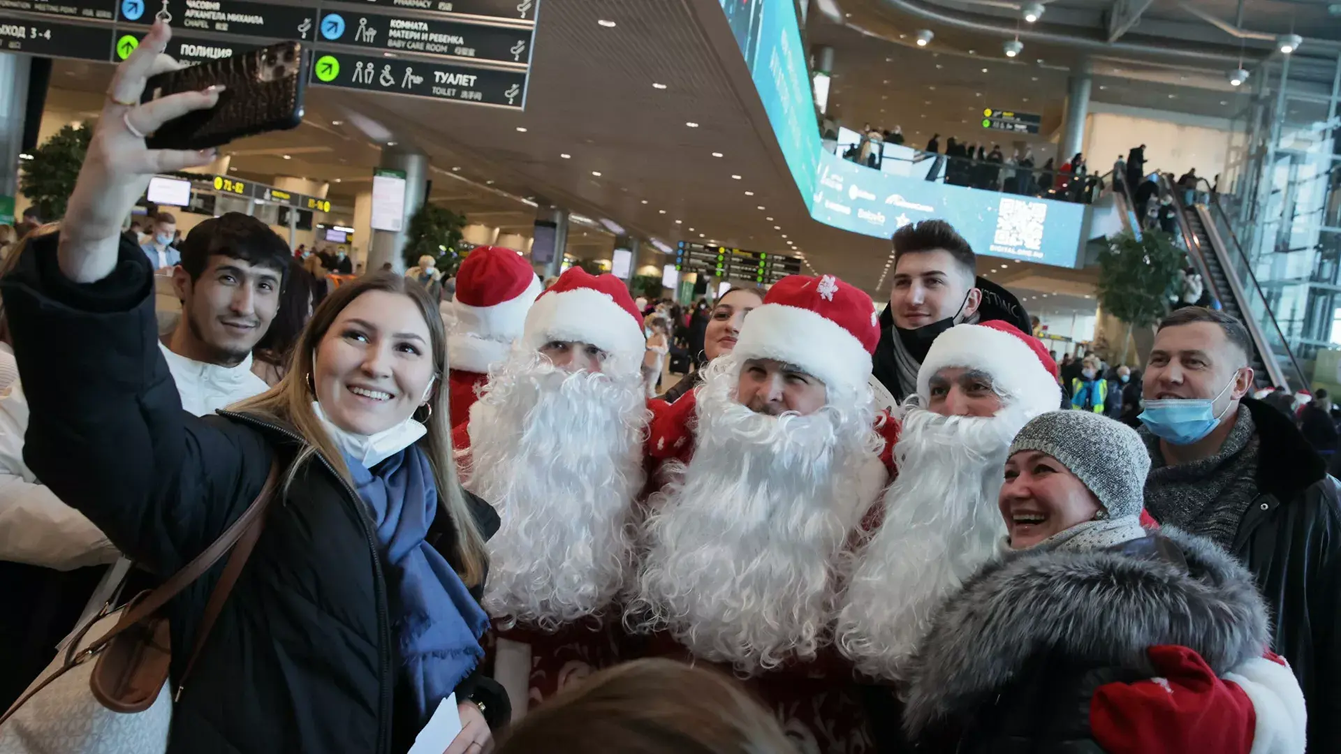"Московский аэропорт "Домодедово" ежегодно готовит тематические сюрпризы для своих гостей. В этот раз праздничное настроение пассажирам подарили двадцать два Деда Мороза", - говорится в сообщении.