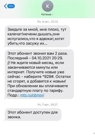 «Она была категорически против предложенного ей лечения. Но ее перевели в другую палату, раздели. У нее был телефон с собой, но не было зарядного устройства. Из реанимации она нам звонила, говорила, что в маске она задыхается. Последнее сообщение от нее о том, что ее просто убивают. Она звонила нам, пока хватало зарядки. Потом перестала. Зарядное мы передали, но, видимо, до нее оно так и не дошло», — поясняет ее сестра Марина.