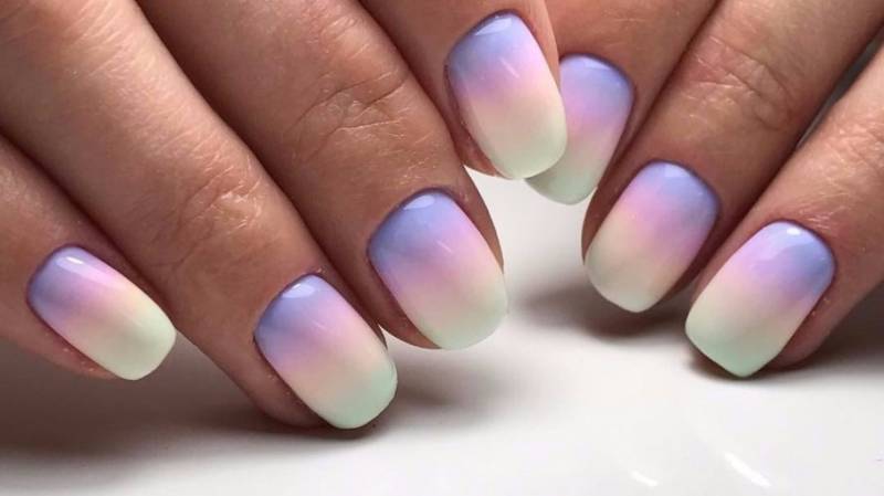 На Новый год можно поэкспериментировать и сделать омбре – плавный переход от одного цвета к другому. Дополнить дизайн можно блестящим топом. Такой вариант неизменно присутствует в списке трендов в искусстве нейл-арта. Выглядит омбре отлично и будет хорошо смотреться на любой длине.