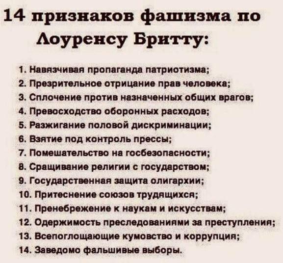 Основные же признаки фашизма остались, в том числе антилиберализм, отрицание выборной демократии, социал-демократии, антикоммунизм, реваншизм и вождизм, экспансионизм, элитизм, социальный дарвинизм, этатизм (если следовать определению Википедии). Тут надо еще добавить, что фашизм не мыслим без имперскости и военной угрозы, иначе как будет реализовываться государственная гегемония.
