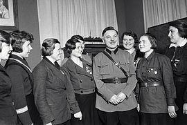 Нарком обороны СССР К. Е. Ворошилов встречается с комсомолками, награждёнными почётным знаком «Ворошиловский стрелок». 1 ноября 1935 года