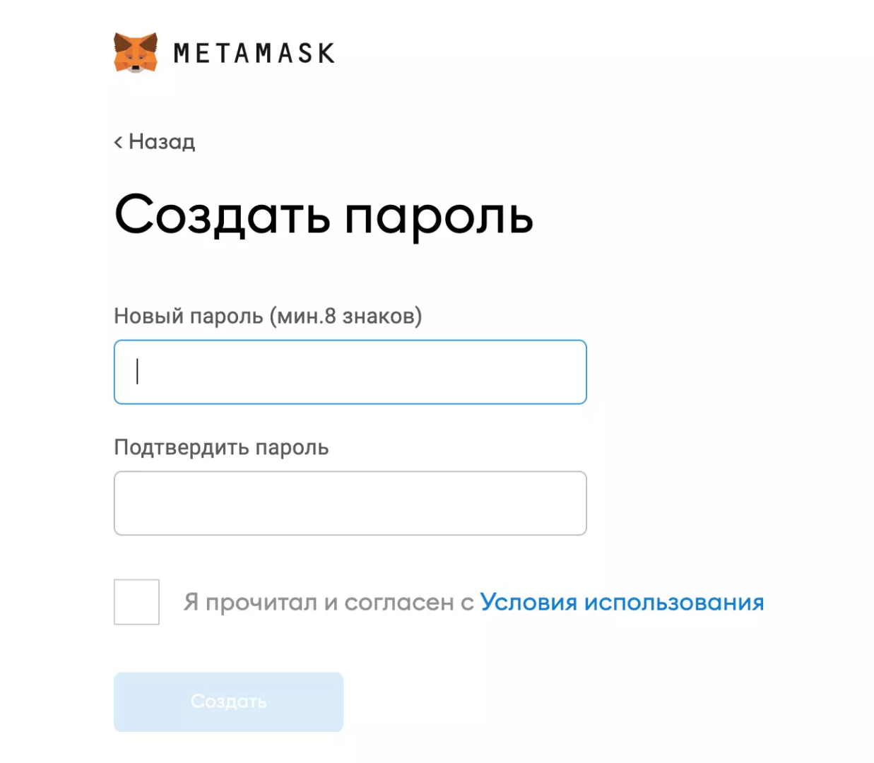 Придумываем свой пароль. Пароль необходим для предотвращения несанкционированного доступа к вашему кошельку (например, если кто-то завладел вашим устройством). Но при утере пароля кошелек можно будет восстановить с помощью секретной фразы.