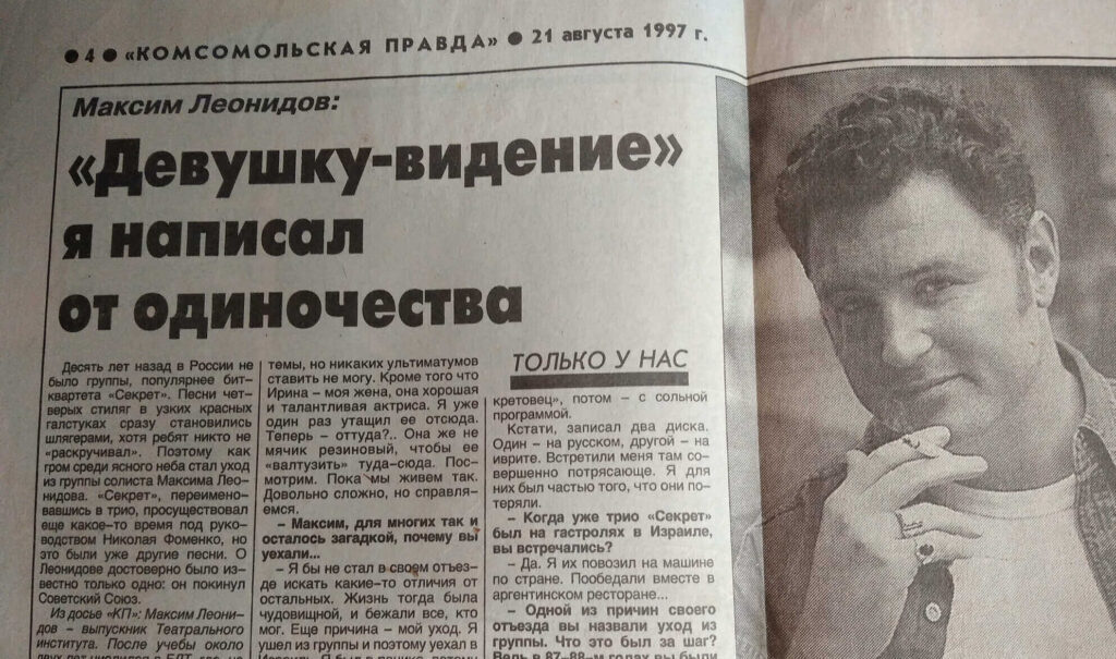 ... ну и ещё хочется вспомнить группу "СЕКРЕТ" (Максим Леонидов уходит из группы в 1990 году). В 1989 году "СЕКРЕТ" дает гастроли в Европе и выступает на двадцатилетии группы "Машина времени" с песней *Путь в сторону солнца*: