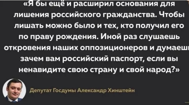 Выходит из пункта 2) Хинштейн и его сотоварищи претенденты на лишение гражданства. Какой "кристально честный"депутат. Да или нет?