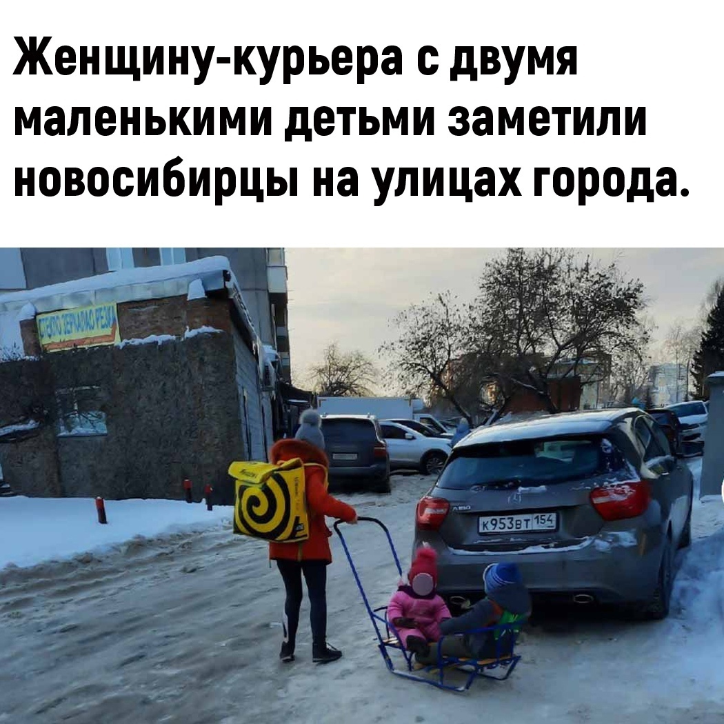 Про эту женщину уже писали. Она одна растит детей. И все время работает курьером. Почему-то не с кем было оставить деток.