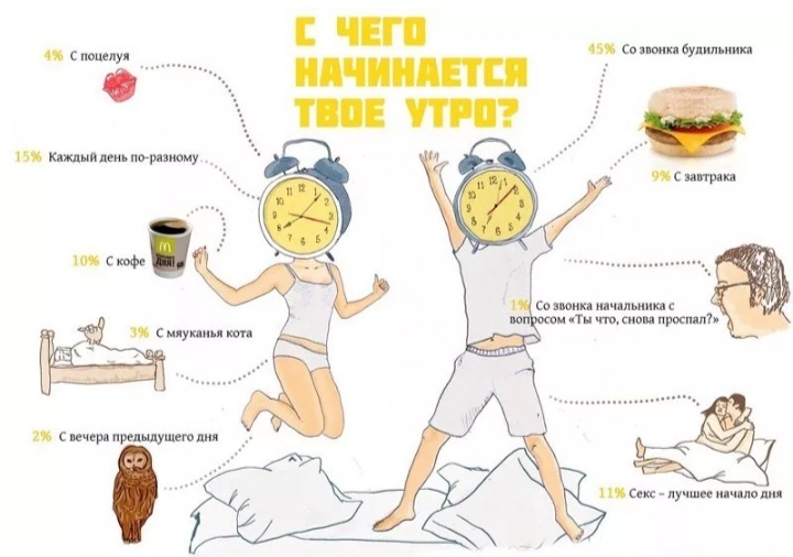 Ощущение, что в туалет вообще никто не ходит с утра?! Чаще ведь всего просыпаешься от природного будильника, раньше всякого поцелуя там, кота, звонка шефа, обычного будильника в телефоне, и т.д., и т.п., а уж тем более секса, кофе и завтрака, зарядки и душа, и т.д., и т.п.!😏