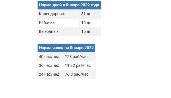 Производственный календарь на январь 2022 года