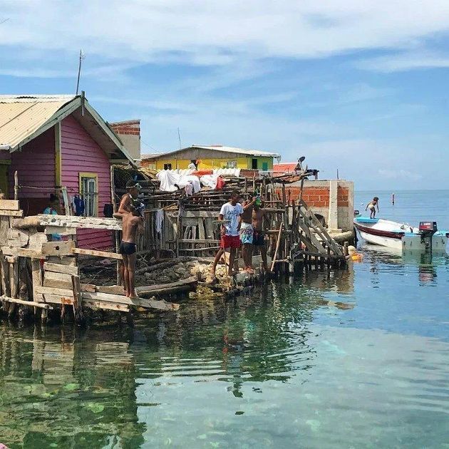 Представьте себе футбольное поле. И еще одно рядом. Два футбольных поля – именно такая площадь этого островка в Карибском море, на котором проживает 1200 человек. Ну вот что их заставило селиться буквально на головах друг друга в этом хаосе домов, лачуг, шалашей и многоугольных пристроек? Непонятно. А между тем жителям вполне себе хорошо, они счастливы и покидать остров вовсе не собираются. Справедливости ради, их никто на берегу в Колумбии (а именно к ней территориально относится остров) и не ждет, страна-то далеко не самая богатая. Итак, остров Санта–Крус.