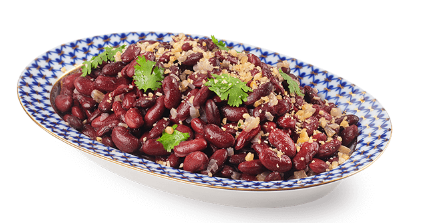 Часть фасоли разомните и смешайте ее с целой. Заправьте фасоль нарезанной кинзой (немного кинзы оставьте для украшения), измельченным чесноком, винным уксусом и солью. Перемешайте.