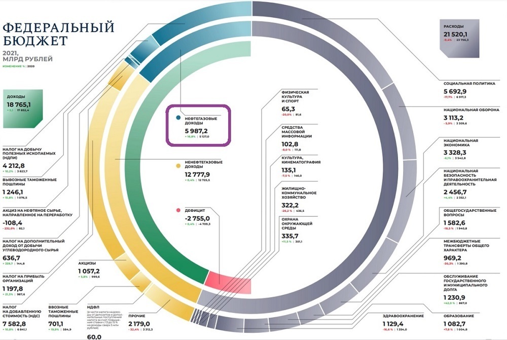 Не надо преувеличивать роль Роснефти в наполнении бюджета. Вот картинка наглядно показывающая структуру бюджета на 2021 год.