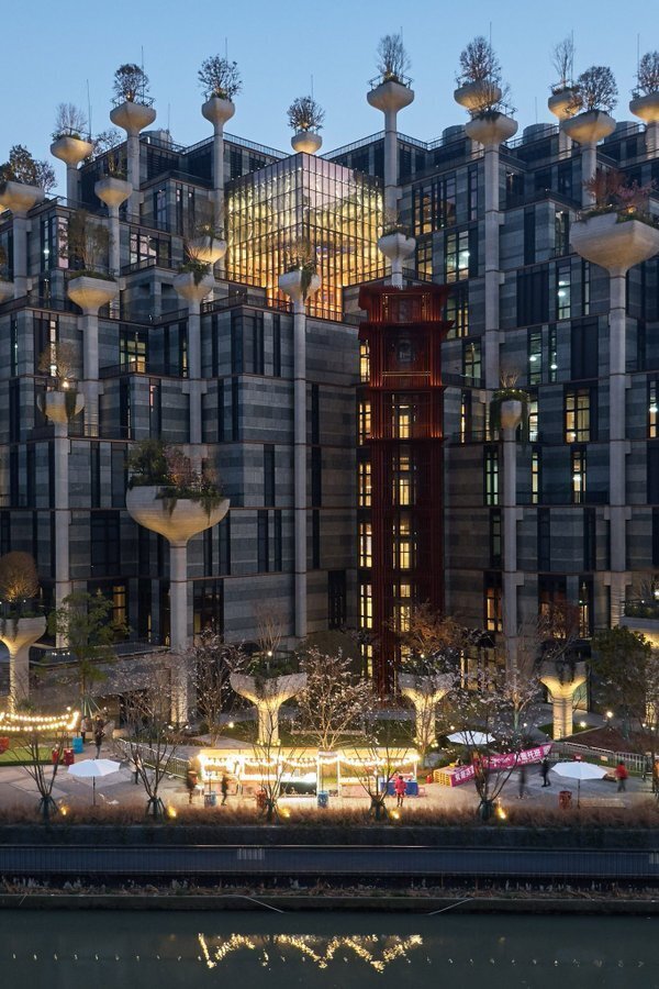 В Шанхае открылся многофункциональный комплекс «1000 деревьев», его создатели вдохновлялись одним из семи чудес света - Висячими садами Семирамиды в Вавилоне. Об этом сообщает издание Dezeen.
