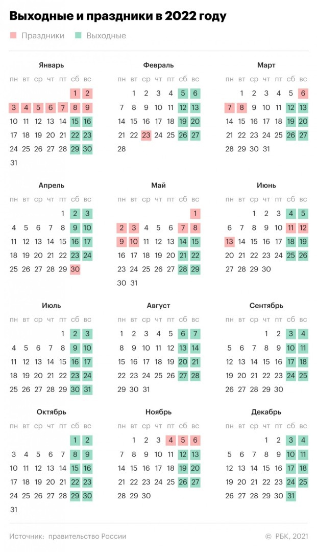 Какие выходные дни и сколько их будет в 2022 году: утвержденный производственный календарь для пяти- и шестидневной рабочей недели на 2022 год
