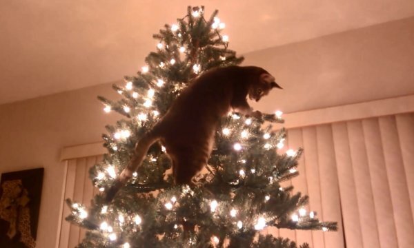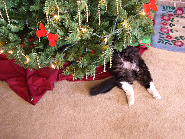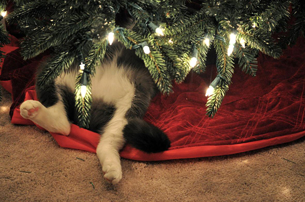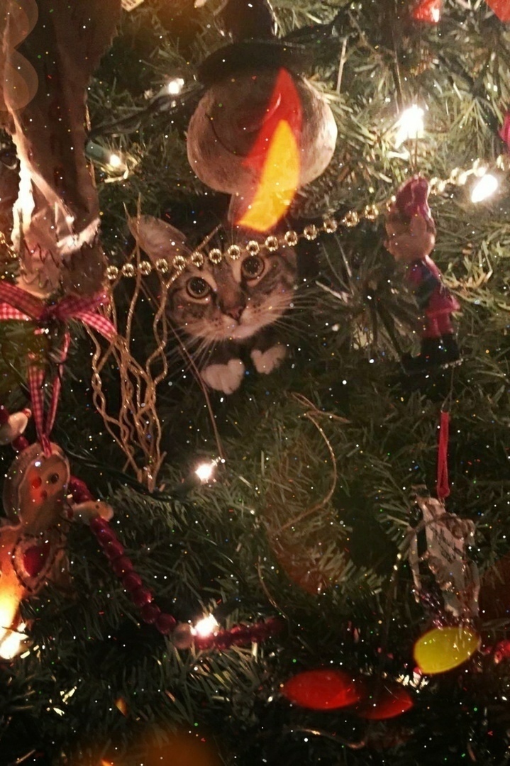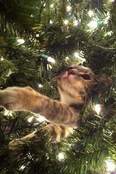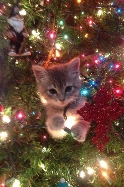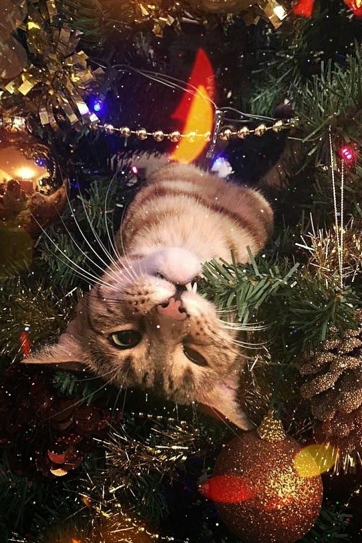 Кот - это брат тигра . А начавшийся год под патронажем Тигра . Фото братьев тигра под ёлкой