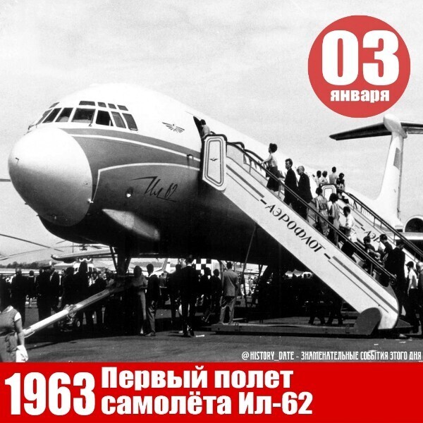 3 января 1963 г. 59 лет назад Состоялся первый полет самолета Ил-62 в СССР