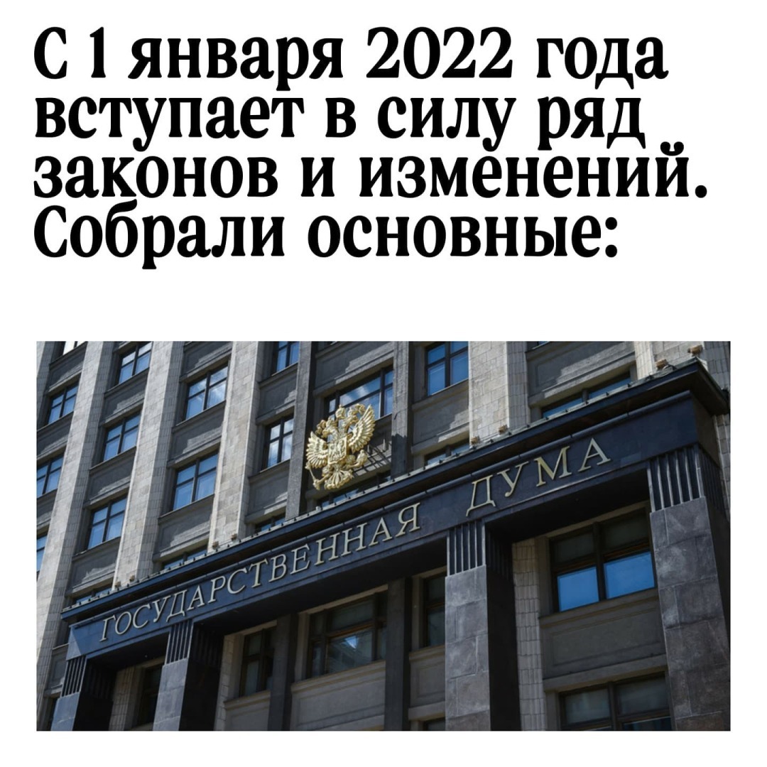 С 1 января 2022 года вступает в силу ряд законов и изменений.