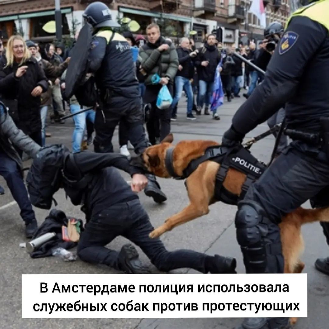 В Амстердаме полиция использовала служебных собак против протестующих!