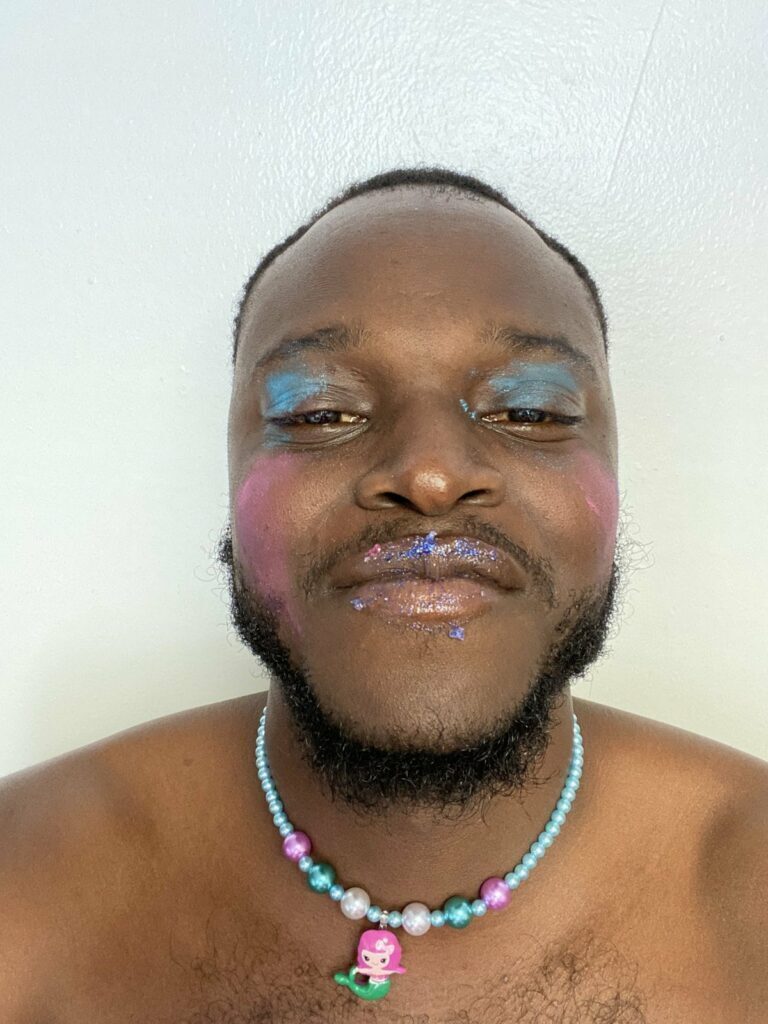 Блестки на губах отлично смотрятся вместе с этими шикарными бусами.