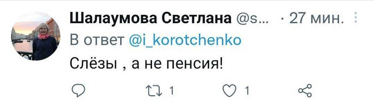 Народ, включая и самих стариков, раззадоренный размером индексации пенсий в 2022 году, сарказма не скрывает. Многие интернет-пользователи считают, что это "слёзы, а не пенсия", а некоторые и вовсе в шоке. Такого мнения, например, придерживается Светлана Шалаумова.
