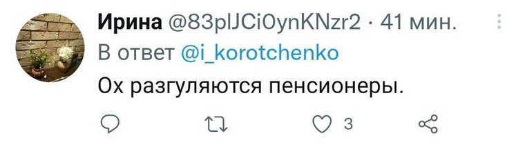 Ещё одна интернет-пользовательница - Ирина не без сарказма замечает: "Ох, разгуляются пенсионеры".