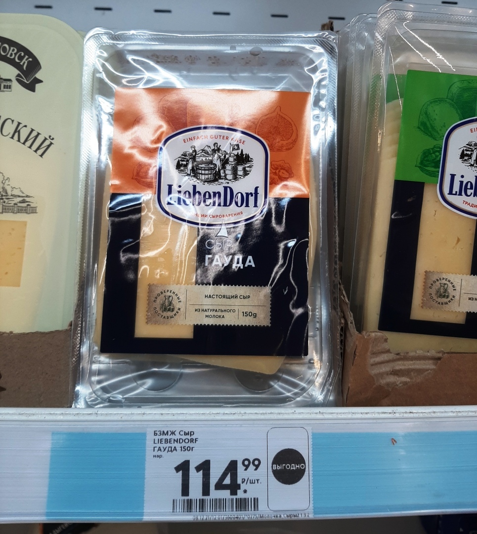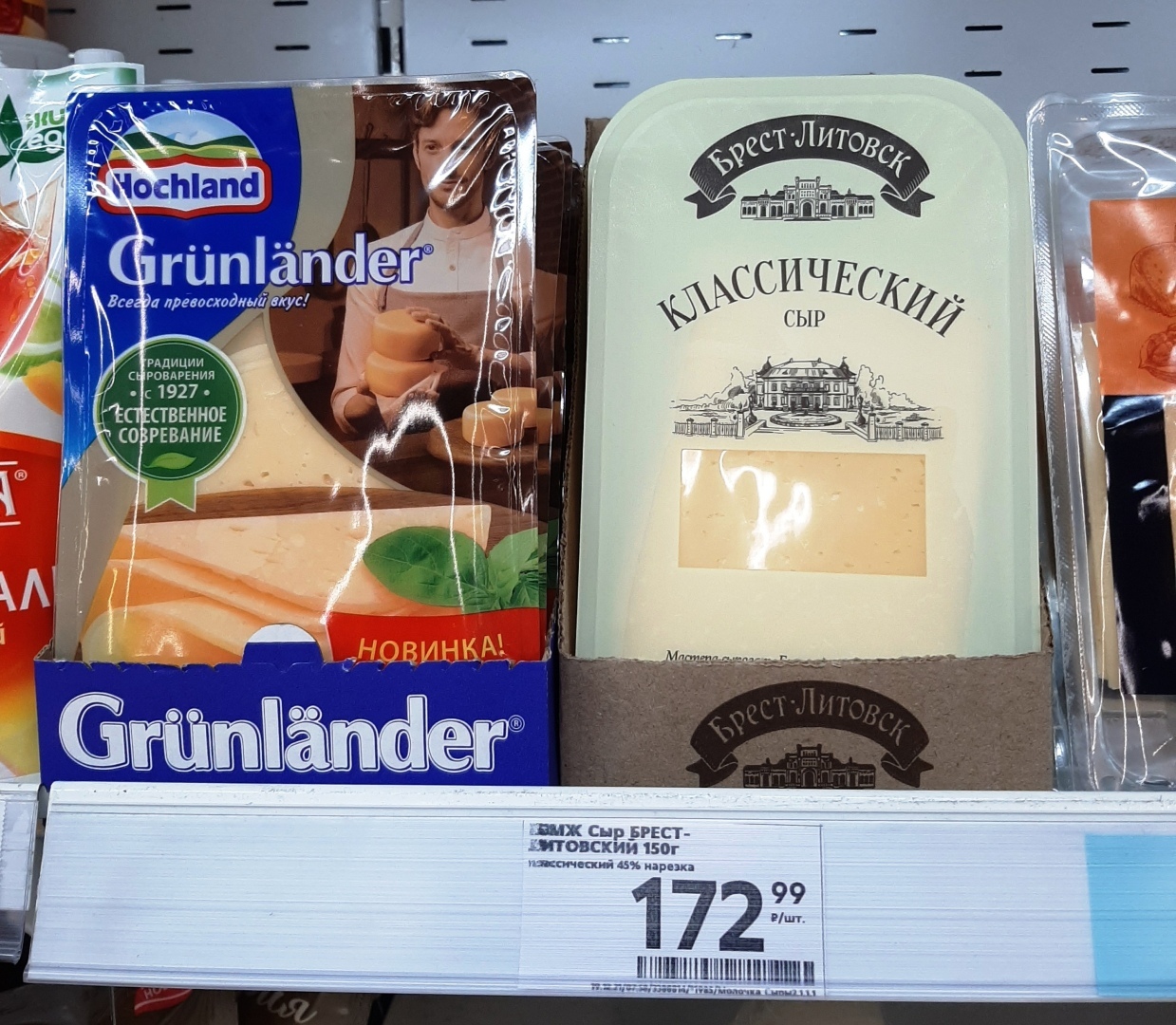 Учитывая современное положение дел во взаимоотношениях Белоруссии и Польши, как впрочем, и РФ с Польшей, санкции и атнисанкции, его продажа даже в Белоруссии довольно удивительна, не говоря о РФ. Стоила такая упаковка нарезанного сыра массой 150 г всего 100 российских рублей. В принципе и другие сыры, расфасованные в бруски по 200 г, только уже белорусского производства, у данных торговцев тоже стоят 100 рублей за штуку.
