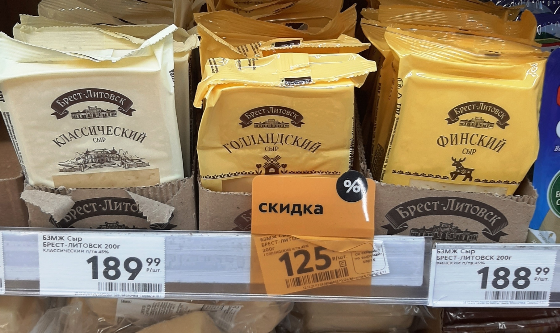 При этом такой же белорусский сыр, но уже в Магните или Пятёрочке, можно приобрести, в лучшем случае - по скидке за 125 рублей, а обычная его цена в таких магазинах порядка 190 рублей.