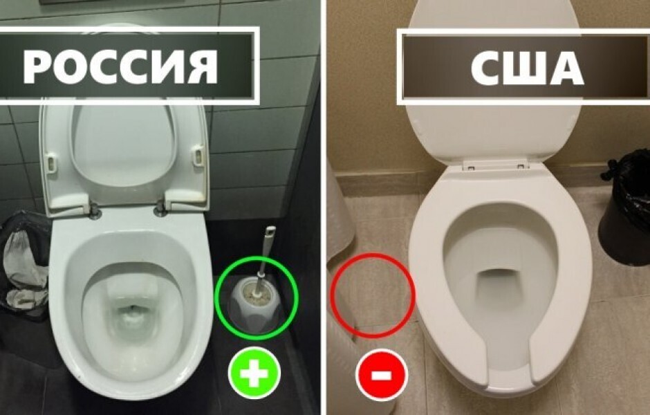 Вряд ли кто-то будет отрицать, что наши люди и американцы — как с разных планет. Однако даже те, кто переезжает в Америку, не забывают свои родные корни, даже в таких мелочах как туалет. От давно устоявшихся привычек порой очень трудно отказаться, поэтому консервативные люди пытаются все перестроить «как надо». Ходят слухи, что эмигранты, перебравшиеся из Советского Союза или Европы в страну свободы, сразу же меняли всю сантехнику на привычную для себя. Главное не устраивать экстремальных туалетов на улице, которые можно встретить в некоторых уголках России.