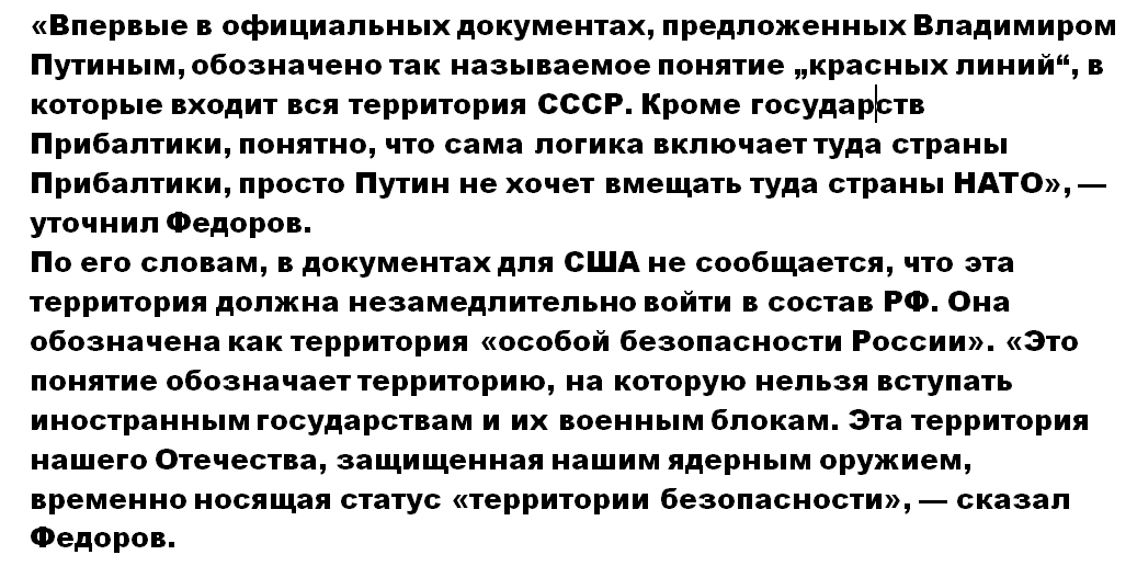 «Обозначены границы, в которые мы должны вернуться в результате политического процесса, запущенного президентом Российской Федерации Владимиром Путиным», —рассказал Федоров в интервью газете «Национальный курс», видео можно посмотреть на youtube-канале данного издания.