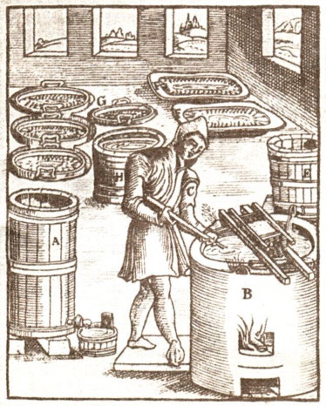 "Кто желает сделать доброго пороху, надобно хороший запас стухшей человеческой мочи высшего сорта смешать с пеплом, листьями и соломой, да уложить в селитряную яму. А ту яму поливать каждую неделю мочой или помоями, так, чтоб куча в яме была чуть влажной, но не сырой, да каждую неделю перемешивать. Спустя несколько месяцев прекратить добавлять мочу, а как влага испарится и куча созреет, на поверхности оной появится белым налётом селитра, каковую можно распознать на вкус".