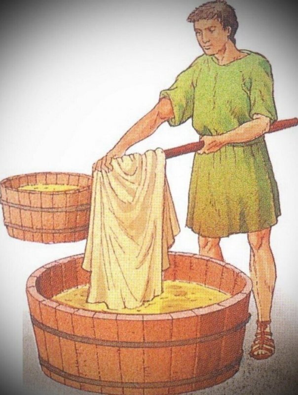Кстати, в современной жизни окрашенные ткани также нуждаются в закреплении, вот только вместо содержимого горшка используют едкий натр. Но суть процесса при этом остается той же.