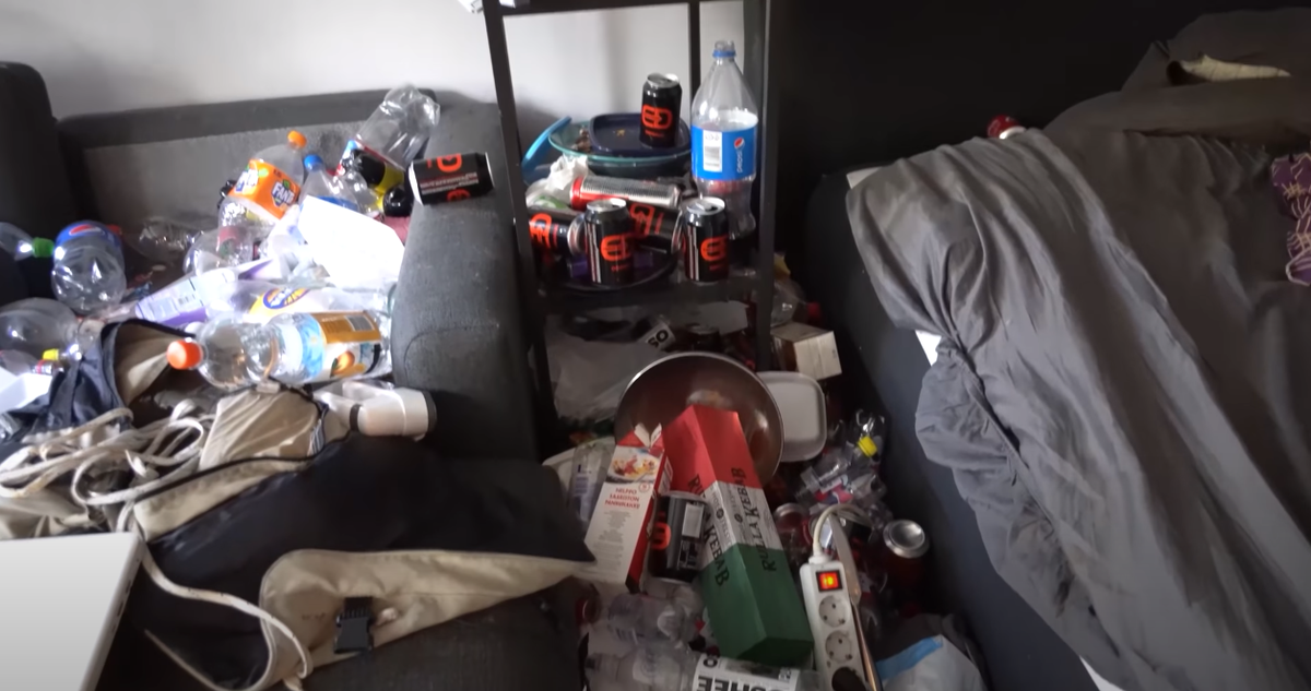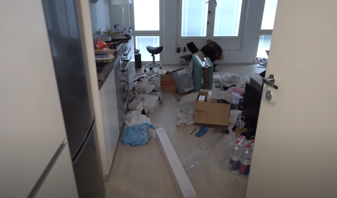 В квартире на полу была вывалена помойка, мусор и результаты жизнедеятельности. А обстановка в квартире стояла десятки тысяч долларов. Дорогая техника и современная мебель. Сложно представить, что произошло и почему человек не убирался месяцами.