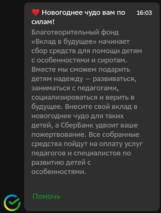 КАК ВЕРНО ВЫ УХВАТИЛИ СУТЬ посыла автора, Татьяна. Наталья не поняла, но я ей поясню. Статья она же КОНКУРСНАЯ, под видом благотворительности, о которой ПОРЯДОЧНЫЕ ХРИСТИАНЕ молчат, автор пару сотенок себе в трусы под шумок засунуть торопится, борясь насмерть. То есть пока кто-то действительно помогает, а кто-то на этом деньги пытается заработать, да хоть в виде плохонькой статейки. Извини, Натаха, просто не сдержалась, откомментила, так по делу показалось. Поставлю и тебе лайк за непонятливость, 5 копеек на благотворительность, адресная помощь тебе, беги жаловаться, как обычно. СКАН СДЕЛАЛА.