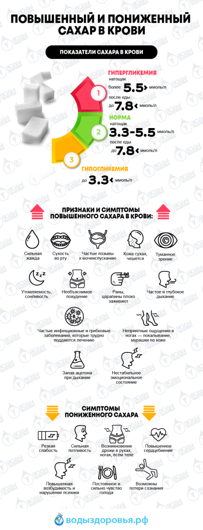 обезвоживание – меньшее количество воды в организме означает более высокую концентрацию сахара в крови;